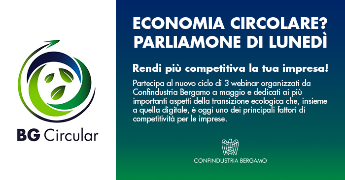 Dopo gli appuntamenti dello scorso anno, Confindustria Bergamo organizza nei primi tre lunedì di maggio un nuovo ciclo di webinar gratuiti per continuare ad approfondire i nuovi trend dell’economia circolare e rendere le imprese più competitive nei nuovi scenari di mercato.