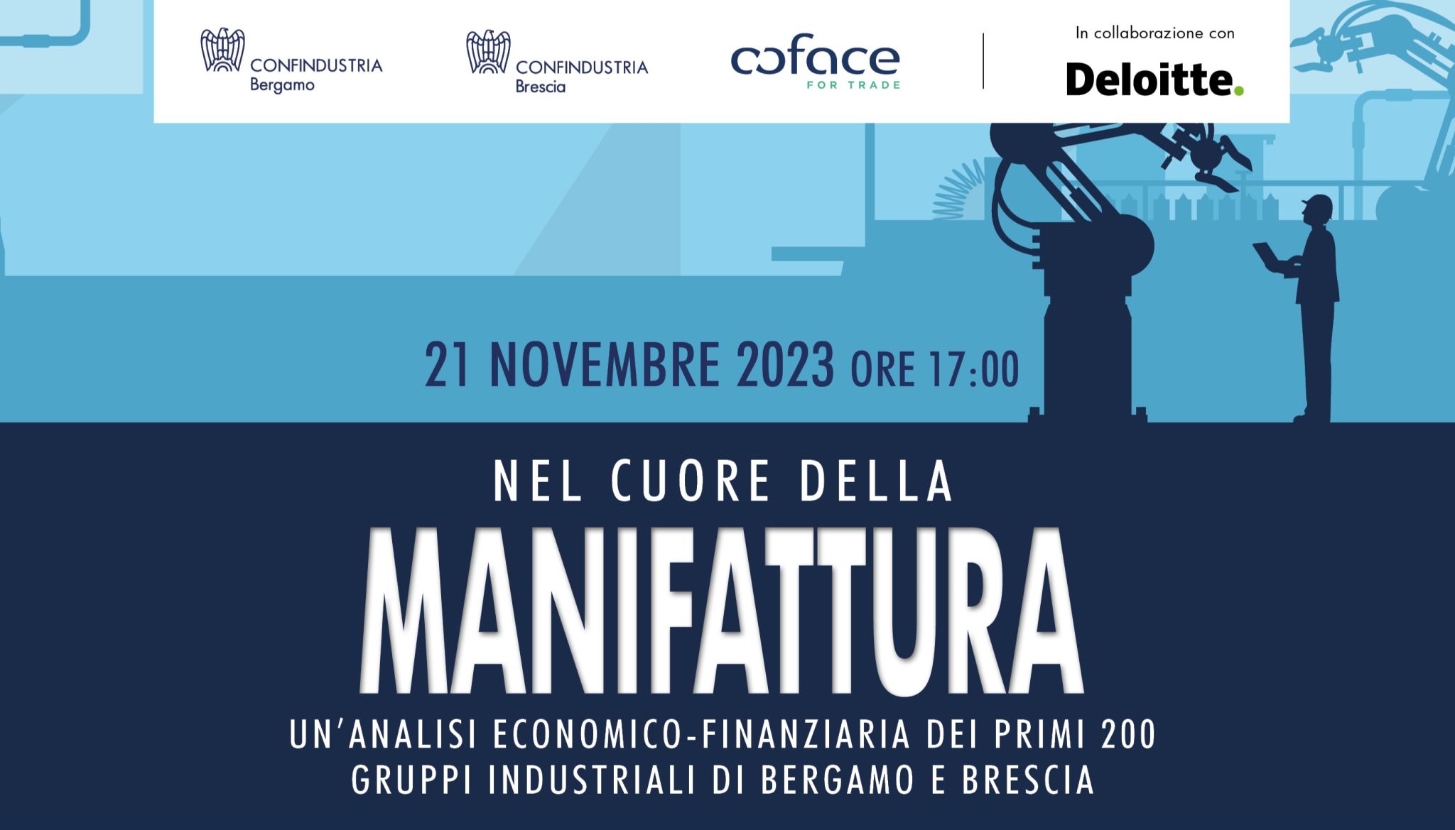L’evento di presentazione dei risultati "Nel cuore della manifattura - Un'analisi economico-finanziaria dei primi 200 gruppi industriali di Bergamo e Brescia" si terrà martedì 21 novembre alle ore 17 presso la cantina Bersi Serlini Franciacorta (via Cereto 7, Provaglio d’Iseo, BS). Al termine è prevista una visita alla cantina e un aperitivo di networking.
