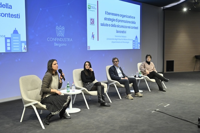 Durante l’incontro sono stati anche presentati i risultati di una ricerca dell’Università Bicocca - con la collaborazione di ATS Bergamo- sul benessere organizzativo e le strategie di Promozione della Salute nei contesti lavorativi, partendo da dati analizzati nel periodo pandemico. All’incontro hanno partecipato Paolo Rota, Vice Presidente Confindustria Bergamo; Nicoletta Castelli, Direttore Sanitario Agenzia di Tutela della Salute (ATS) Bergamo; Veronica Velasco, Docente di Psicologia del lavoro e delle Organizzazioni presso l’Università Milano Bicocca; Luca Biffi e Marinella Valoti, Responsabile e Psicologa della Struttura Semplice Prevenzione delle Dipendenze -Dipartimento di Igiene e Prevenzione Sanitaria- di ATS Bergamo; Emanuela Mollo, Struttura Semplice Educazione alla Salute e Prevenzione -Dipartimento di Igiene e Prevenzione Sanitaria- di ATS Bergamo.