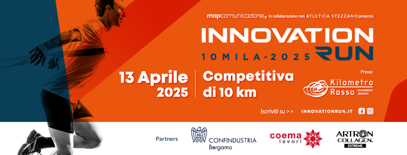 Confindustria Bergamo è capofila del progetto con Coema Lavori, Artron Collagen Extreme, che, insieme a Kilometro Rosso, condividono la spinta innovativa e l’attenzione al territorio. Innovation Run è un evento realizzato da Map Comunicazione, a cui si aggiunge lo sponsor tecnico Pubbliarea e la collaborazione dell’Atletica Stezzano Asd.