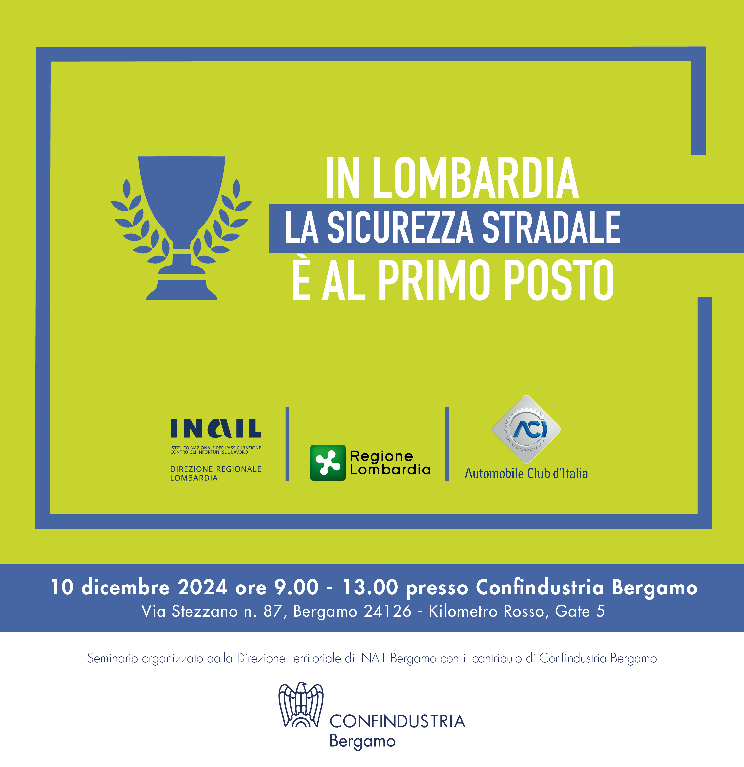 SICUREZZA STRADALE. SEMINARIO GRATUITO ORGANIZZATO DA INAIL BERGAMO CON IL CONTRIBUTO DI CONFINDUSTRIA BERGAMO. 10 DICEMBRE.