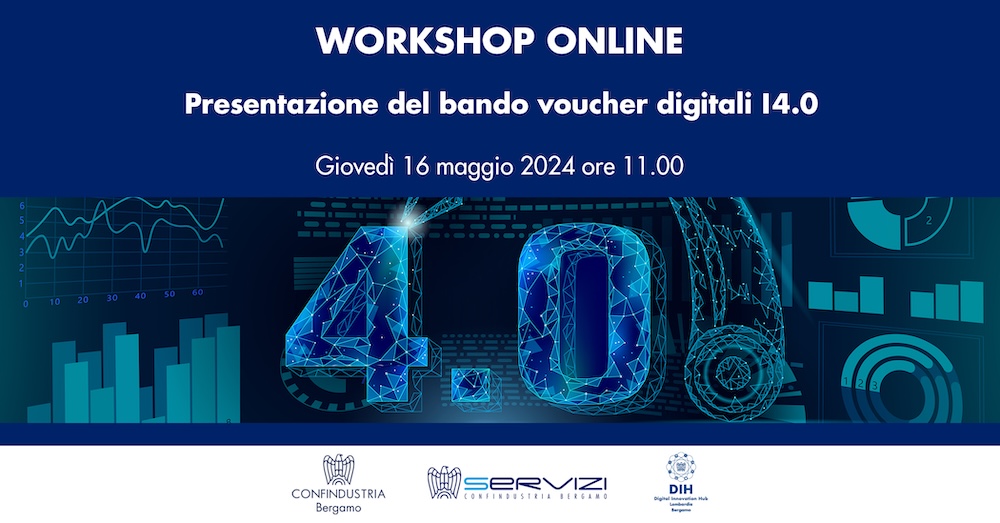 Confindustria Bergamo con Servizi Confindustria Bergamo e Digital Innovation Hub Bergamo, in qualità di soggetti aggregatori e promotori di queste iniziative, organizza un workshop online che si terrà giovedì 16 maggio 2024 ore 11.00 con la finalità di presentare la misura, condividere e raccogliere tematiche d’interesse dalle aziende, per creare sinergie e attivare nuove progettualità in grado di rispondere ai requisiti del “Bando Voucher digitale I4.0 – Misura A”.