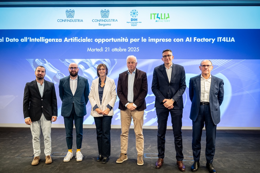 Martedì 12 ottobre 2025, insieme a Confindustria, IT4LIA AI Factory e al Digital Innovation Hub Bergamo, abbiamo approfondito le potenzialità dell'Intelligenza Artificiale, la conoscenza della nuova piattaforma IT4LIA, dedicata alle aziende che vogliono sfruttare il potenziale di questa tecnologia. Sono stati presentati anche casi concreti di adozione di AI nelle nostre imprese.