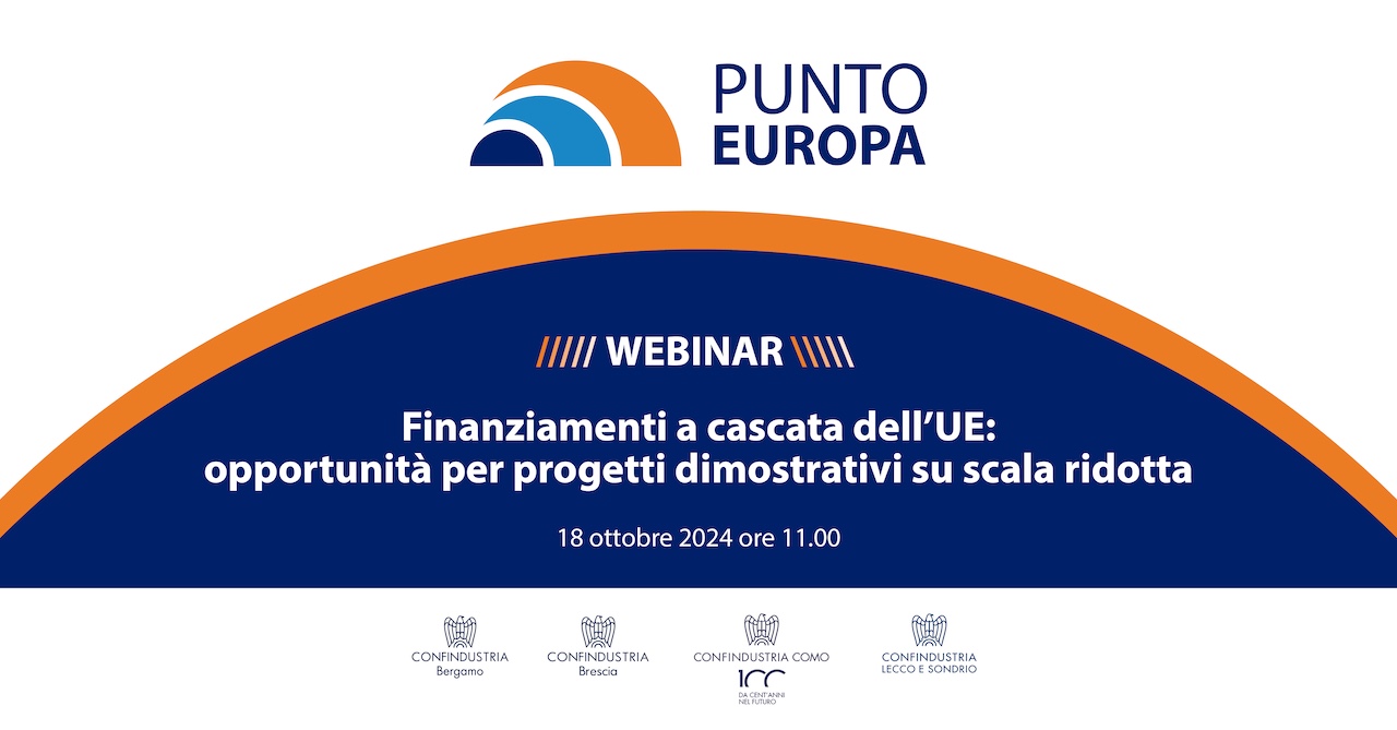 Punto Europa, l’ufficio a Bruxelles di Confindustria Bergamo, Brescia, Como, Lecco e Sondrio, organizza per gli associati un webinar informativo riguardo le opportunità di finanziamento europee rapresentate dai cascade funding, o open call, il 18 ottobre 2024 dalle 11 alle 12.