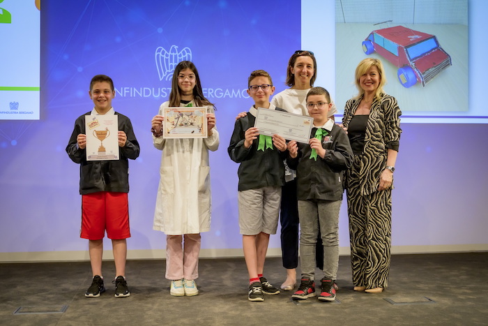 Seconde, a pari merito, si sono classificate le classi 5°B e 5°C della Scuola Primaria di Verdello con il giocattolo “Il cantiere delle meraviglie: dove natura e tecnologia crescono insieme” e un diario di bordo digitale ricco di immagini e video con protagonisti gli alunni, e la classe 5° dell’Istituto Bambino Gesù Opera S. Alessandro di Bergamo con il giocattolo “Space Shuttle”. Al terzo posto si è posizionata la classe 5°A della Scuola Primaria di Cologno al Serio con “Elastic Car”, una macchina mobile caricata per mezzo di un elastico messo in tensione attraverso la rotazione delle ruote anteriori e posteriori.