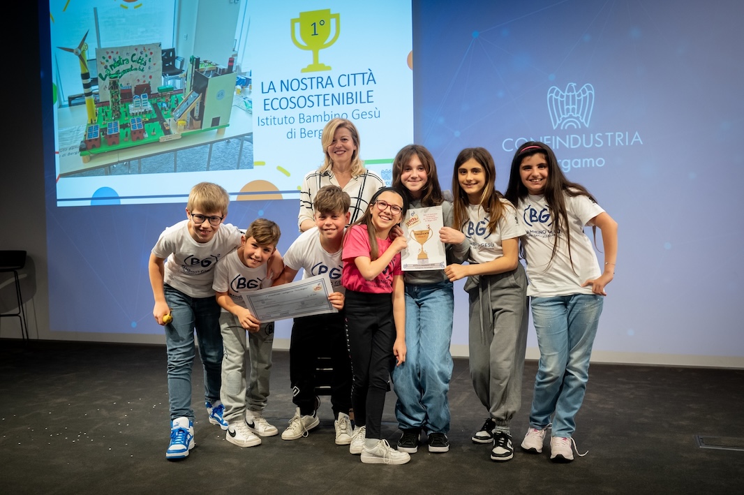 Per la categoria Tecnologici ha vinto la classe 5° dell’Istituto Bambino Gesù di Bergamo con “La nostra città ecosostenibile”, uno spazio urbano in cui l’economia circolare è protagonista con isole ecologiche, pale eoliche, trasporti e illuminazione cittadina azionati da motorini elettrici.