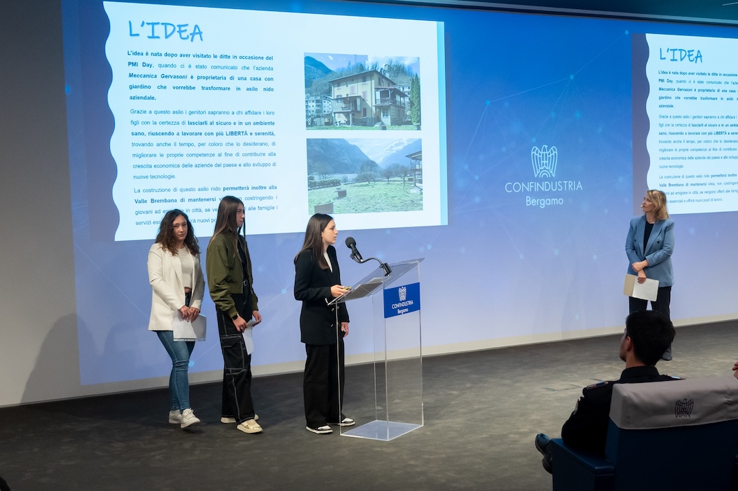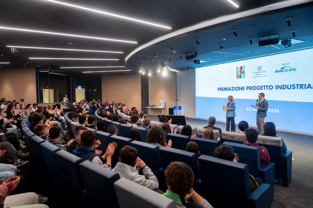 La premiazione dei migliori lavori ha sancito nell'Auditorium di Confindustria Bergamo la conclusione del Premio Industriamoci, abbinato al PMI DAY promosso dal Comitato Piccola Industria di Confindustria Bergamo. L’intento è quello di offrire ai giovani l’opportunità di un incontro ravvicinato con le realtà produttive del territorio, per accompagnarli alla scoperta di un mondo in grande evoluzione, sempre in cerca di profili professionali adeguati.