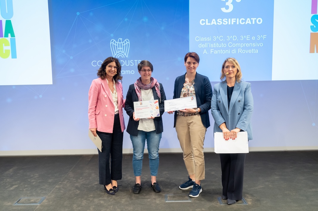 Il primo premio è stato attribuito agli studenti delle classi 3A -3B -3C dell’Istituto Comprensivo Valle Serina-San Pellegrino Terme per il progetto di Asilo Nido aziendale “Piccole Colombe” legato alle aziende Meccanica Gervasoni Srl e Imex Srl. Seconde classificate le classi 3A - 3B - 3C - 3D dell’Istituto Comprensivo Don Milani di Verdello per i progetti, “La Pianta ... Libera”, “Giardino Giapponese” e “Un quadro di ... Emozioni” legati alle aziende Società Agricola Nozza e Basf SpA. Terzi i ragazzi delle classi 3C – 3D – 3E – 3F dell’Istituto Comprensivo Andrea Fantoni di Rovetta per i progetti “Scorpion Bay for girls: Freedom” e “Fabric Wallcovering for school” legati alle aziende Scorpion Bay SpA e Martinelli Ginetto SpA.