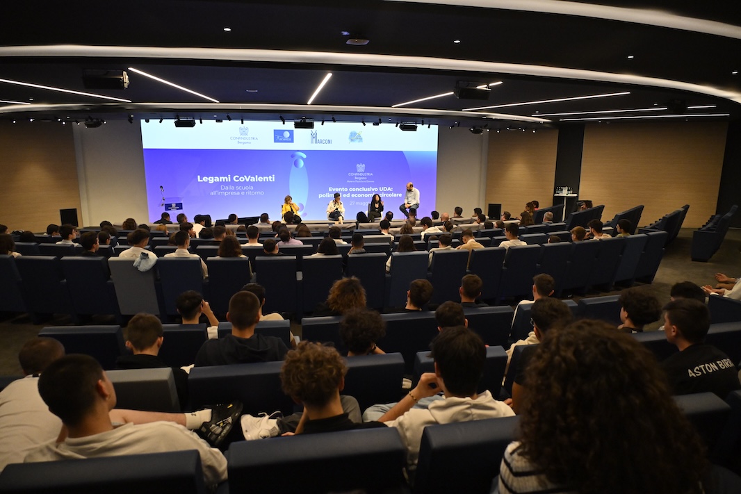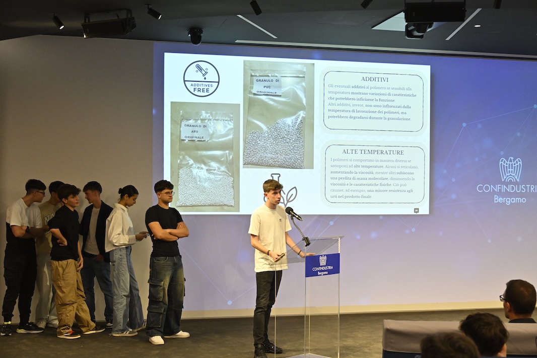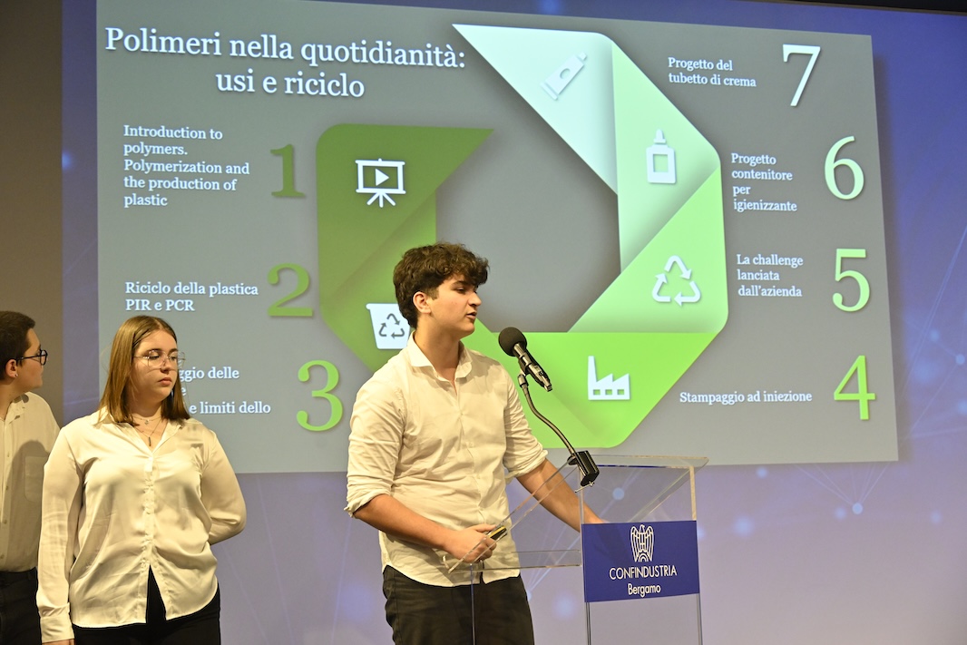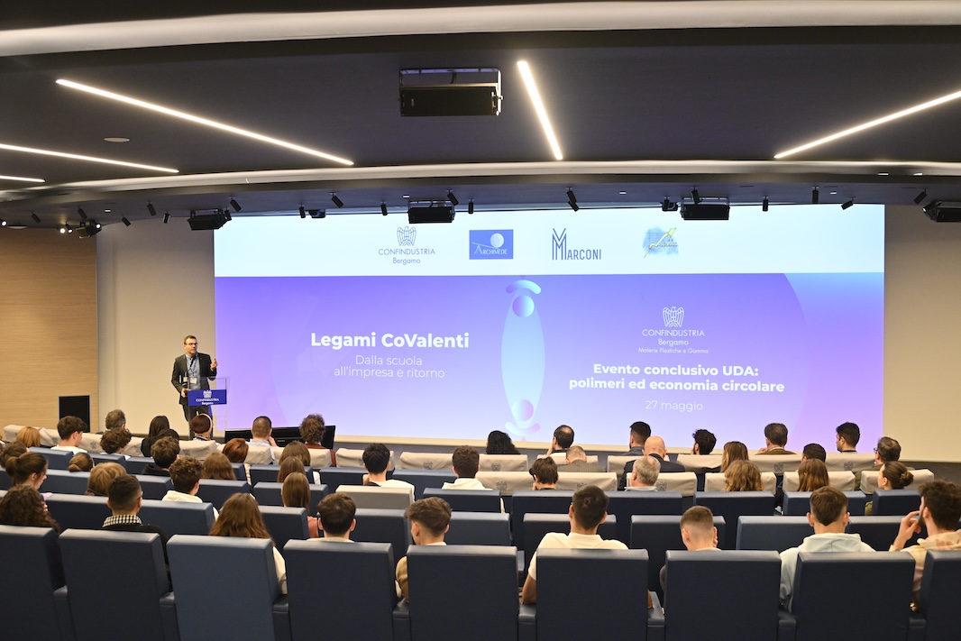 Sono seguite l’introduzione di Silvio Dorati, Presidente del Gruppo Materie Plastiche e Gomma di Confindustria Bergamo, e le presentazioni degli studenti sui casi sviluppati intorno alla unità didattica “Polimeri ed economia circolare”. La mattinata si è chiusa con una tavola rotonda con Maria Amodeo, Dirigente Scolastico dell’Istituto Natta, Chiara Pardi, Dirigente Scolastico dell’Istituto Archimede, e Caterina Rocca, Docente dell’Istituto Marconi.