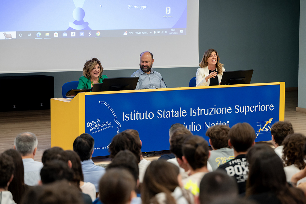 Mercoledì 29 maggio, a partire dalle ore 9, nell’Auditorium dell’Istituto Natta, ha preso il via la seconda e ultima giornata dedicata all’unità didattica “Processi e cicli produttivi chimici”. Dopo il saluto di Maria Amodeo, sono intervenuti Mariella Giannattasio, Presidente del Gruppo Chimici di Confindustria Bergamo, Cesare De Palma, Delegato Education di Confindustria Puglia e Amedeo Borricelli, Past President del Gruppo Chimici Confindustria Bari|BAT.