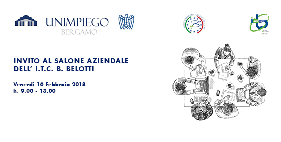 Anche quest’anno Unimpiego Bergamo rinnova l’invito a tutte le aziende del territorio a partecipare all’evento il “Salone Aziendale” in programma per venerdì 16 febbraio: un’opportunità unica per conoscere e sottoporre a colloquio i diplomandi delle classi quinte dei corsi di Amministrazione, Finanza e Marketing; Relazioni internazionali e marketing; Sistemi informativi aziendali dell'ITC B. Belotti.