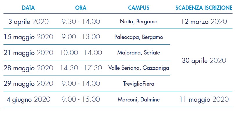 * Nota Importante: a causa della situazione di emergenza legata alla diffusione del Coronavirus, si avvisa che il primo appuntamento previsto presso l’Istituto Natta il 3 aprile 2020, è stato rinviato a data da definirsi.