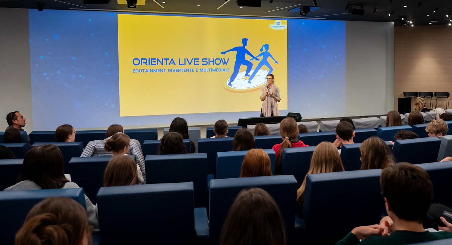 Orienta Live Show è un format che si sviluppa con animazioni digitali e momenti di interazione con il pubblico per affrontare la tematica dell’orientamento scolastico e professionale in maniera inusuale, ma al contempo efficace. Da una riflessione che parte dalle proprie attitudini, viene costruito un percorso per aiutare i più giovani a prendere decisioni più consapevoli, coerenti con le caratteristiche personali, tenendo però anche conto delle opportunità del territorio.