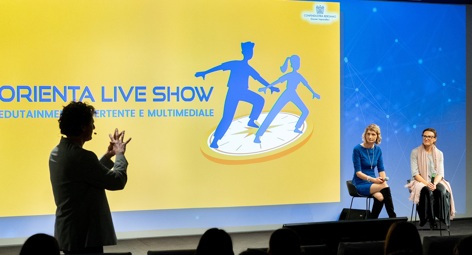 “Orienta Live Show” è la proposta di Confindustria Bergamo dedicata all'orientamento per supportare i ragazzi che stanno concludendo la terza media, spesso ancora indecisi sul loro futuro scolastico. Sono stati 1800 i giovani raggiunti complessivamente nell’edizione 2024, nell’arco di un incontro (6 novembre) nell’Auditorium di Confindustria Bergamo, con possibilità anche di collegamento a distanza e di due seminari in streaming (entrambi il 12 novembre) a cui si è aggiunto un webinar (6 novembre) che ha coinvolto 260 genitori.