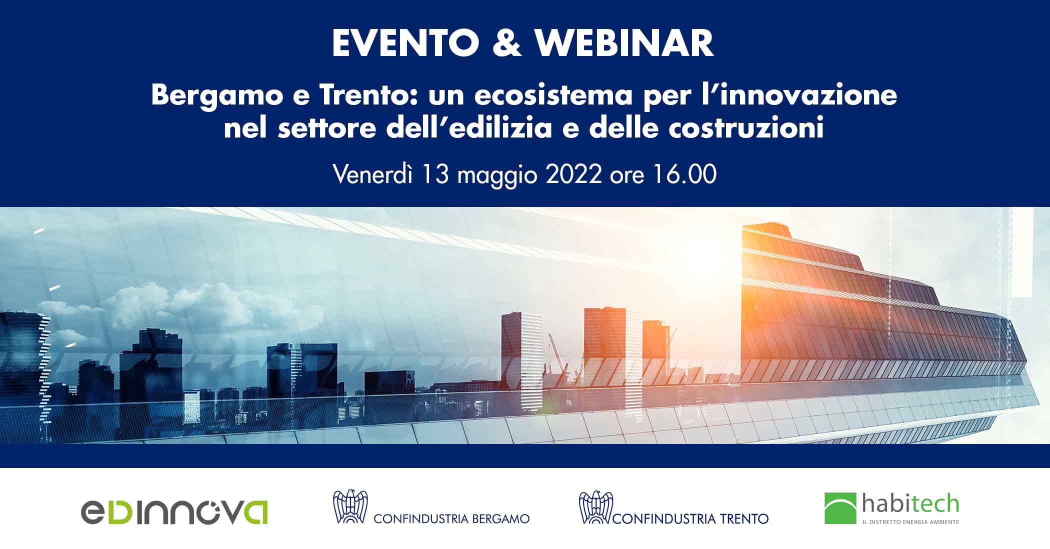 Per approfondire questi temi la Rete d'imprese Edinnova, in collaborazione con Confindustria Bergamo, Confindustria Trento e Habitech, organizza un evento dal titolo "Bergamo e Trento: un ecosistema per l’innovazione nel settore dell’edilizia e delle costruzioni" che si svolgerà venerdì 13 maggio alle ore 16.00 presso l'auditorium di Confindustria Bergamo.