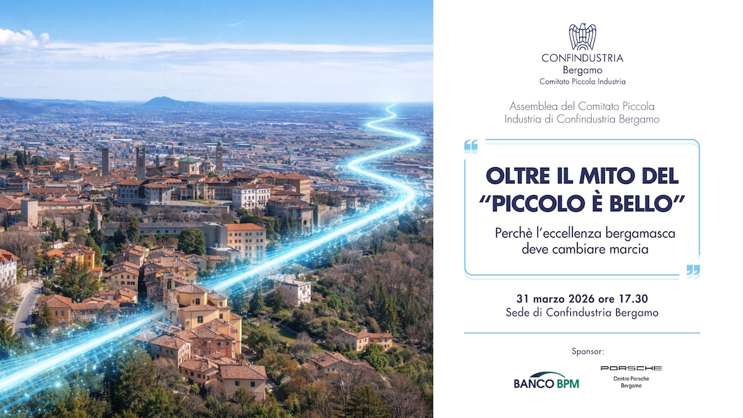 Martedì 31 marzo a partire dalle ore 17.30, dopo la conclusione dell’Assemblea elettiva del Comitato Piccola Industria di Confindustria Bergamo, all’interno dell’auditorium dell’Associazione, si terrà l’evento pubblico: “Oltre il mito del “Piccolo è bello”. Perché l’eccellenza bergamasca deve cambiare marcia”.