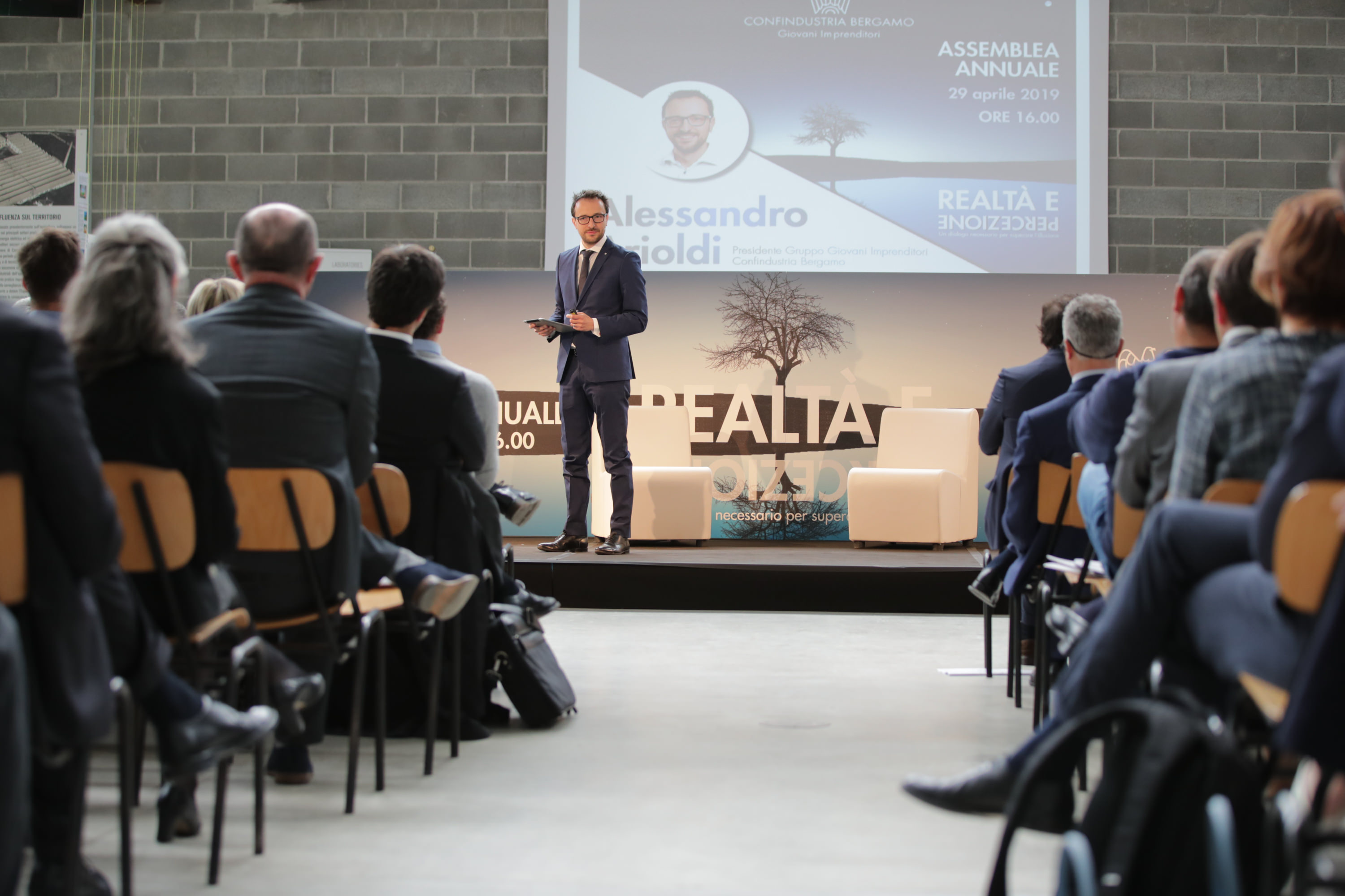 Ne hanno parlato in assemblea Alessio Rossi, Presidente dei Giovani Imprenditori di Confindustria, Alessandro Arioldi Presidente Giovani Imprenditori Confindustria Bergamo, Carlo Cottarelli Direttore dell'Osservatorio sui Conti Pubblici Italiani, Massimilano Magrini co-fondatore e Managing Partner di United Ventures, Monica Chiari Head of HR di cameo, Aniello Aliberti Presidente Piccola Industria di Confindustria Bergamo e Matteo Dell'Acqua Presidente Giovani Imprenditori di Confindustria Lombardia.