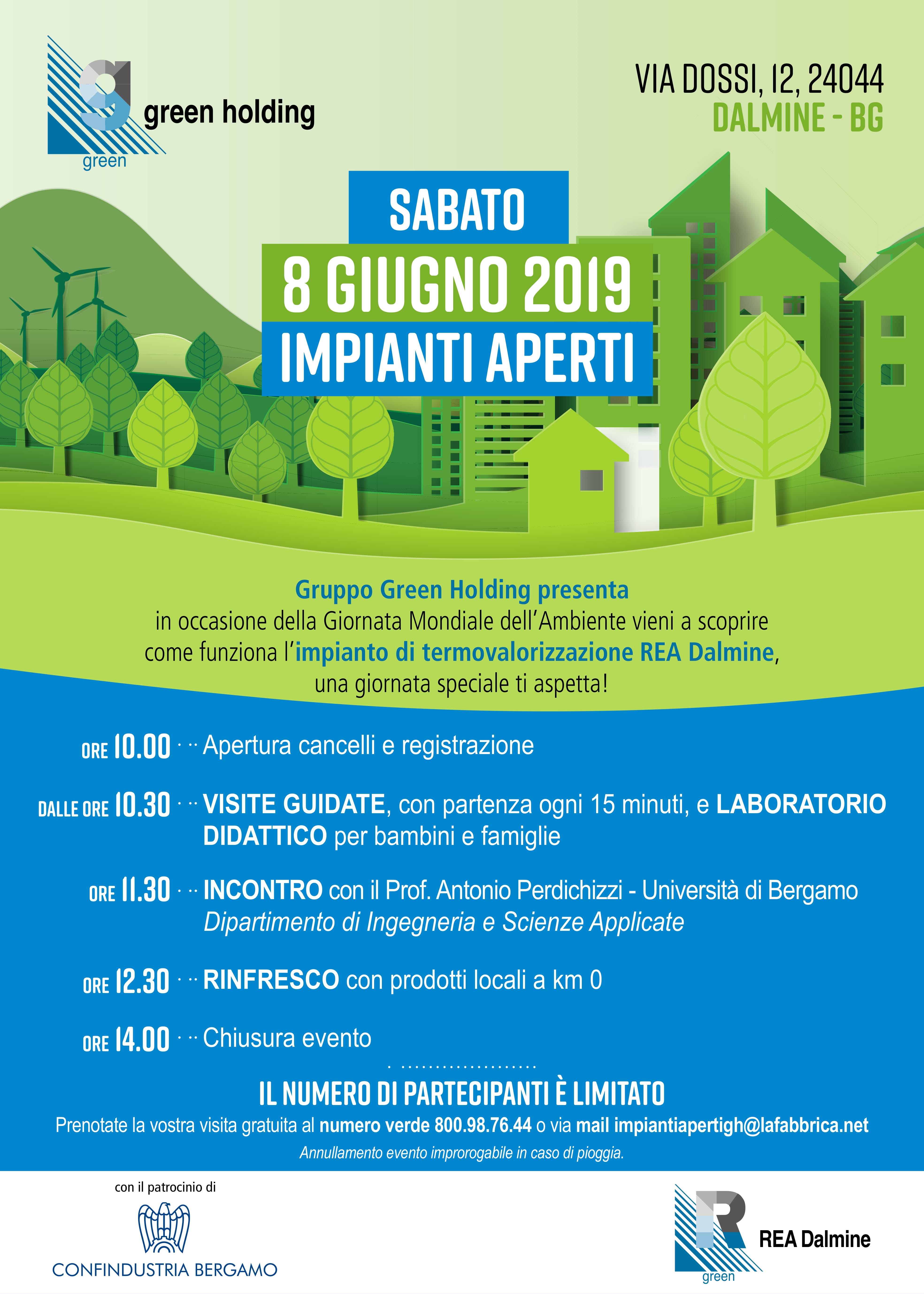 Con l’iniziativa gratuita “Impianti Aperti”, in concomitanza con la Giornata Mondiale dell’Ambiente, il Gruppo Green Holding e l’impianto di termovalorizzazione REA Dalmine promuovono una serie di iniziative di educazione ambientale dedicate alle comunità in cui opera, con l’obiettivo di responsabilizzare i cittadini – in primis i più giovani - sui temi dell’economia circolare e della riduzione e corretto smaltimento degli scarti.