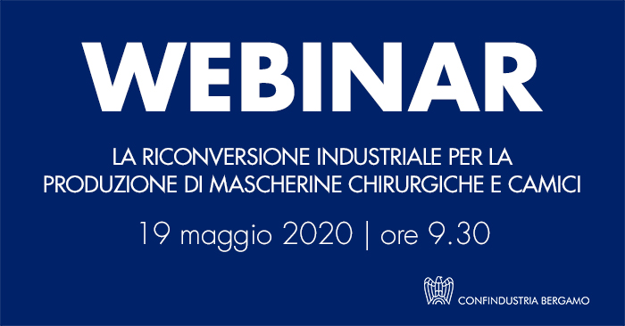 WEBINAR 19 MAGGIO - LA RICONVERSIONE INDUSTRIALE PER LA PRODUZIONE DI MASCHERINE CHIRURGICHE E CAMICI