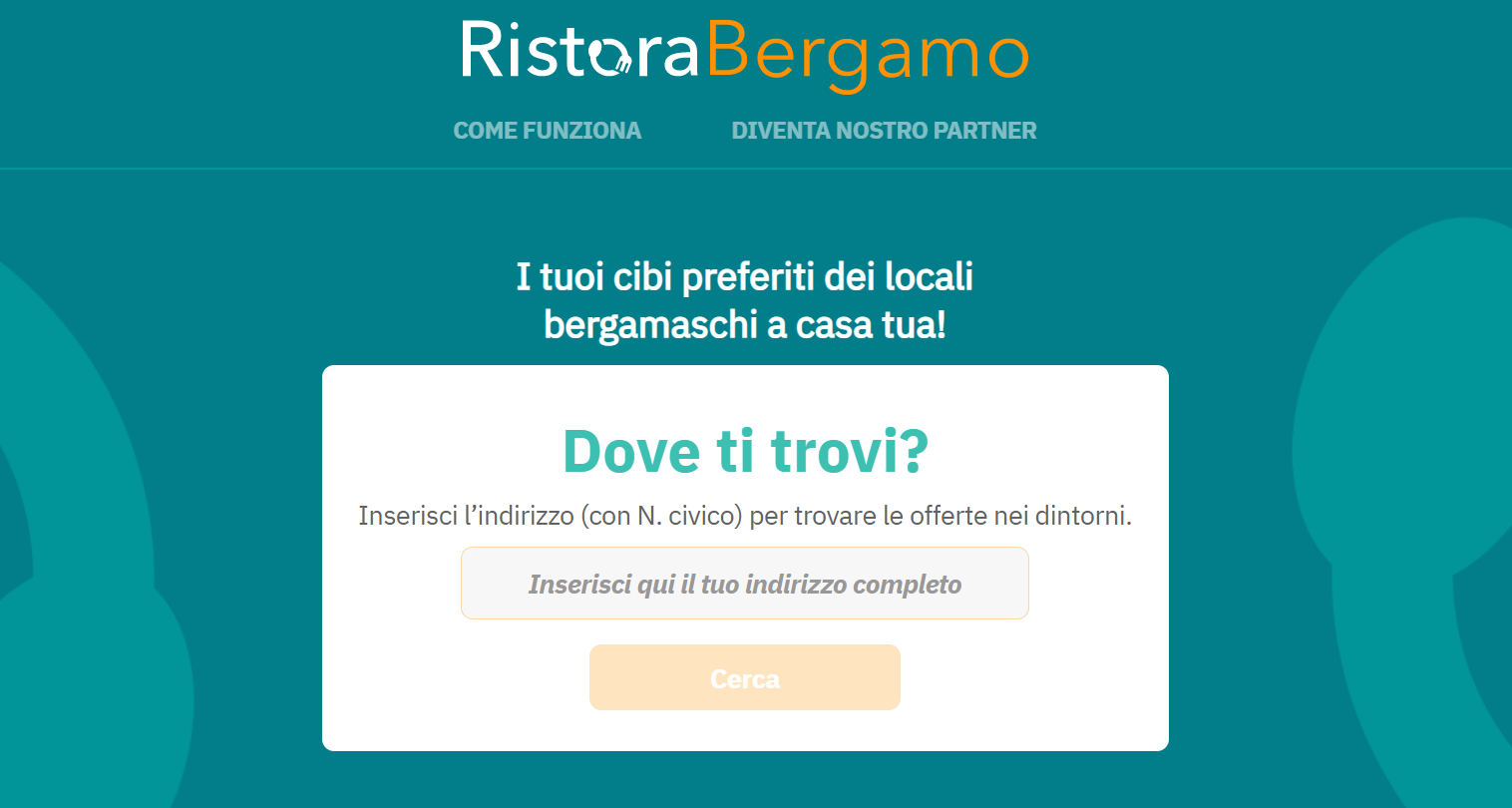 RistoraBergamo.it. è totalmente gratuita e tutta bergamasca e si pone l’obiettivo di dare un aiuto concreto al settore, tra i più colpiti dall’attuale emergenza Covid-19 ed è stato sviluppato da VisitBergamo e dal Comune di Bergamo con la collaborazione di Confesercenti, Ascom e Distretto urbano del commercio. Lo scopo è quello di creare un servizio di delivery territoriale che serva agli esercenti e agli utenti in questo periodo di difficoltà, ma che possa poi svilupparsi anche sul lungo termine.