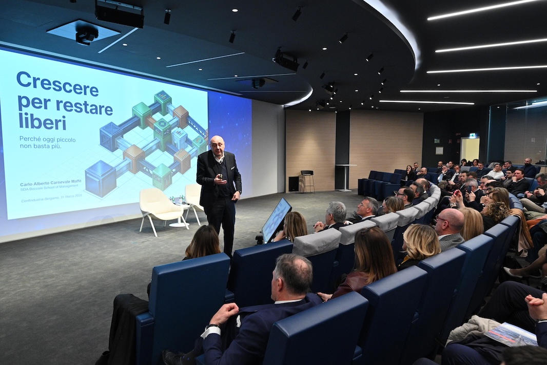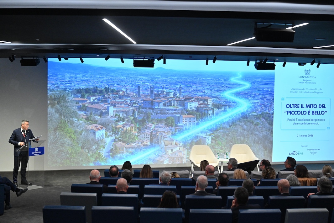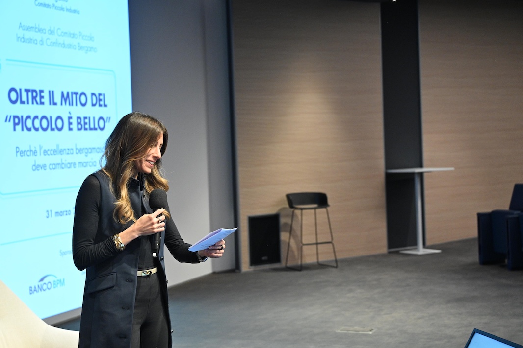 Al termine dell'Assemblea, si è svolto l'evento pubblico: “Oltre il mito del ‘Piccolo è bello’. Perché l’eccellenza bergamasca deve cambiare marcia”. Dopo i saluti di apertura di Oscar Panseri, Presidente uscente del Comitato Piccola Industria Confindustria Bergamo, e di Giovanna Ricuperati, Presidente Confindustria Bergamo, è salito sul palco Matteo Assolari, neo Presidente del Comitato Piccola Industria, per il suo primo discorso pubblico, insieme ai membri del nuovo Consiglio direttivo.