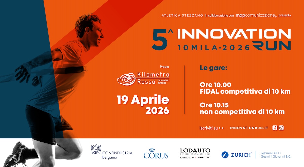 È iniziato il conto alla rovescia per la 5ª edizione di Innovation Run, l'evento podistico in programma domenica 19 aprile 2026 all’interno del Kilometro Rosso, con ritrovo alle ore 8.00 e partenza alle ore 10.00 e 10.15.