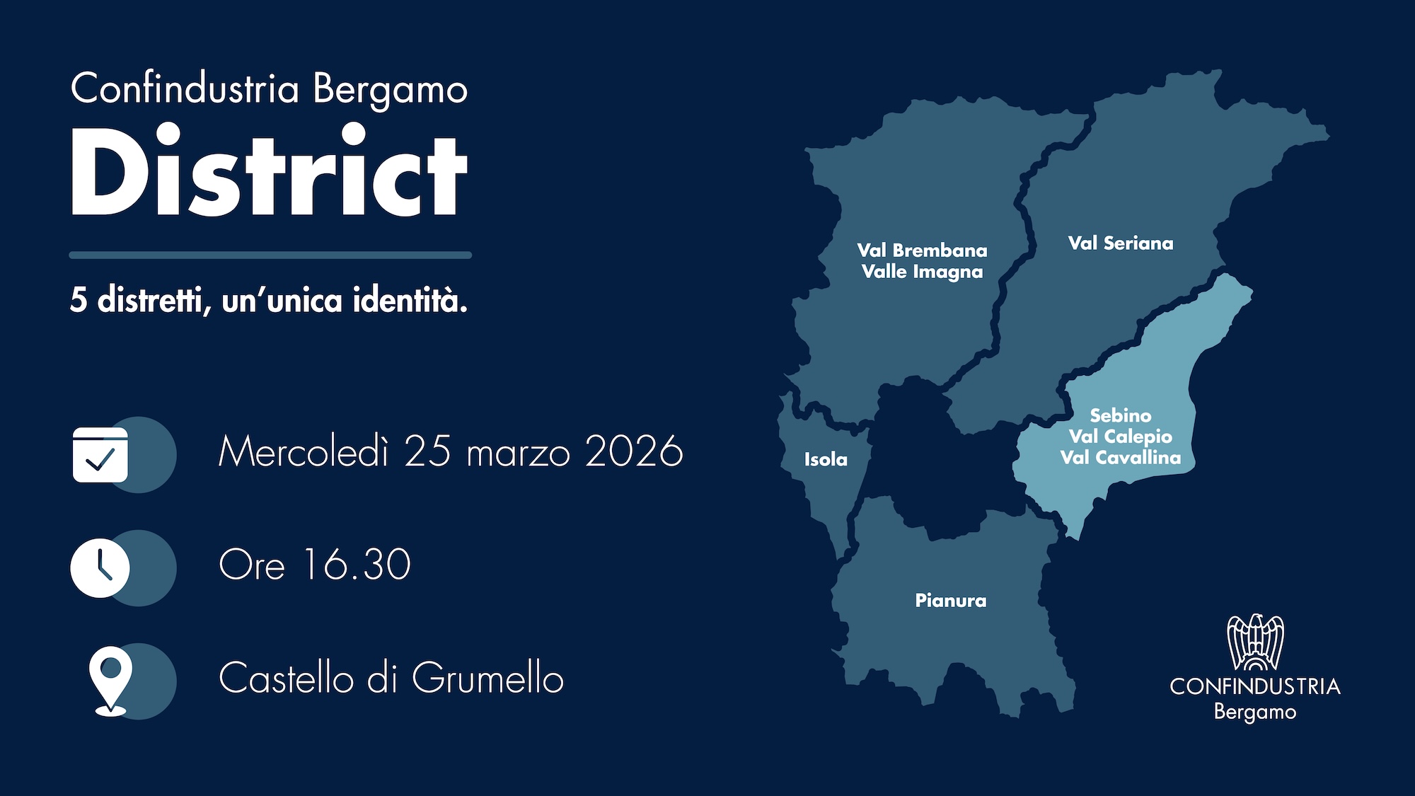 CONFINDUSTRIA BERGAMO DISTRICT: 5 TAPPE NEI DISTRETTI INDUSTRIALI BERGAMASCHI. PRIMO APPUNTAMENTO IL 25 MARZO