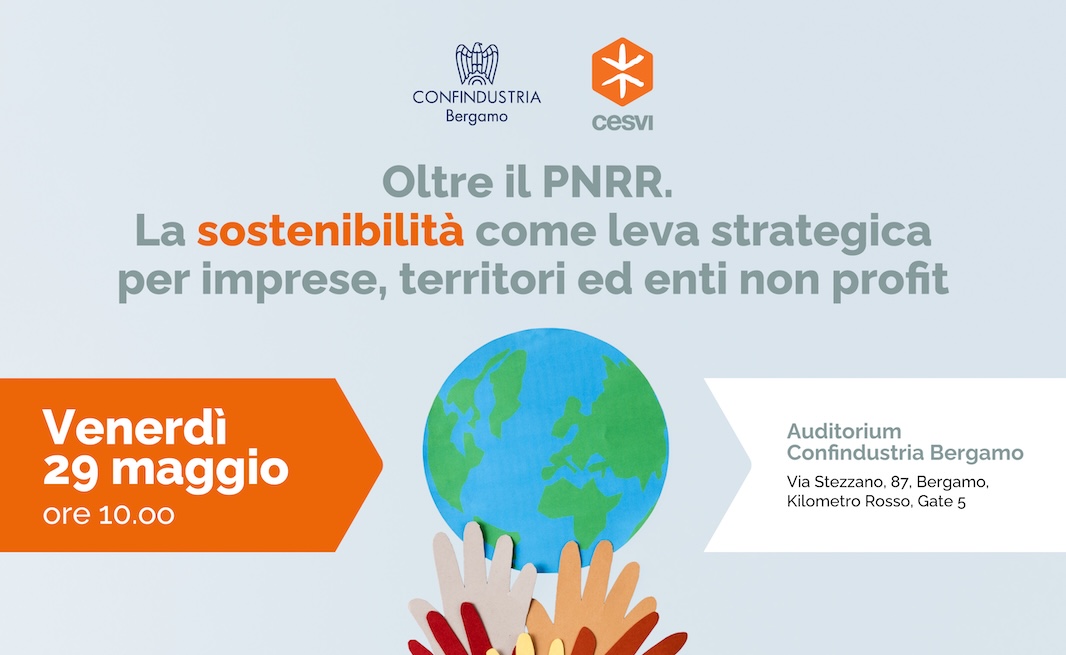 Venerdì 29 maggio alle ore 10.00, nella sede di Confindustria Bergamo, si terrà l’evento pubblico "Oltre il PNRR. La sostenibilità come leva strategica per imprese, territori ed enti non profit", organizzato da CESVI in collaborazione con Confindustria Bergamo.