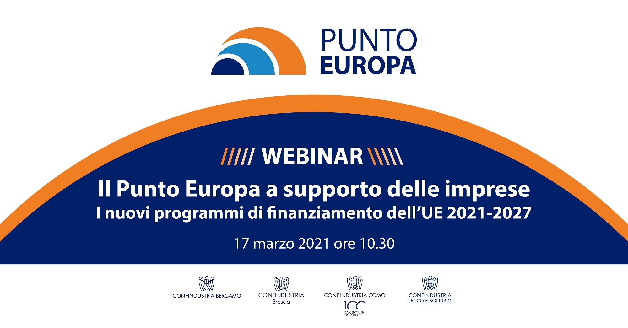 Webinar 17 marzo - Punto Europa: i nuovi programmi di finanziamento dell’UE 2021-2027